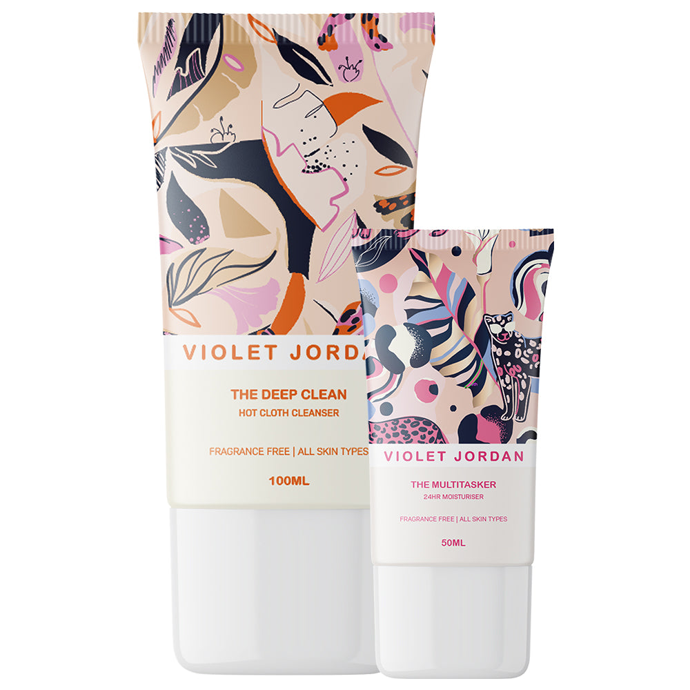 The Essentials Set is our best value money saving bundle. It includes The Deep Clean Hot Cloth Cleanser (100ml), The Multitasker Moisturiser (40ml), The Glow & Go Set & The Volumizer Mascara.